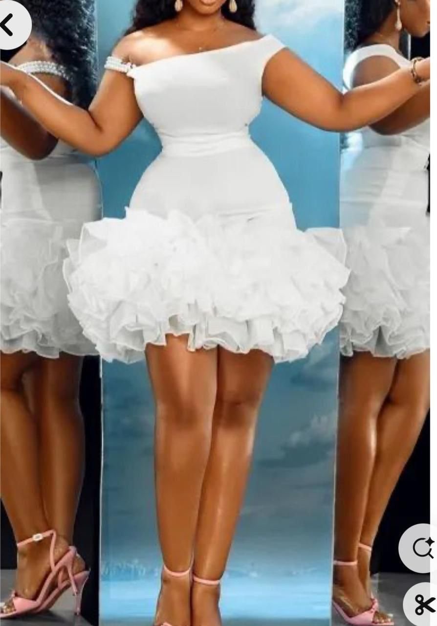 Step into the spotlight with the Bloom Ruffle Cocktail Dress — a stunning off-shoulder mini dress in a dreamy sky-blue hue. Its sleek, fitted bodice beautifully accentuates the waist, while the voluminous layered ruffle skirt adds playful elegance and movement. Adorned with delicate pearl straps draping across one shoulder, this dress perfectly balances sophistication and charm. Ideal for cocktail parties, weddings, prom, or any special celebration, this look pairs effortlessly with silver or nude heels and a sparkling clutch.